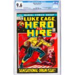 Hero for Hire #1 (Marvel, 1972) CGC NM+ 9.6 Off-white to white pages. This important issue contains the origin and first appearance of Luke Cage, and the first appearance of Diamondback (Willis Stryker). The book is currently tied for the #16 spot on Overstreet’s Top 25 Bronze Age Comics list.
